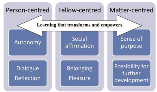 - učenje, osredotočeno na posameznika (razvoj ali ohranjanje mentalnih in telesnih zmožnosti, doseganje zadovoljstva z življenjem, delovanje in opravljanje pomenljivih dejavnosti);