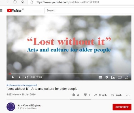 V videoposnetku Zgubljen brez – umetnost in kultura za starejše odrasle ("Lost without it" – Arts and culture for older people) starejši odrasli pripovedujejo, kako je učenje spremenilo njihovo življenje.